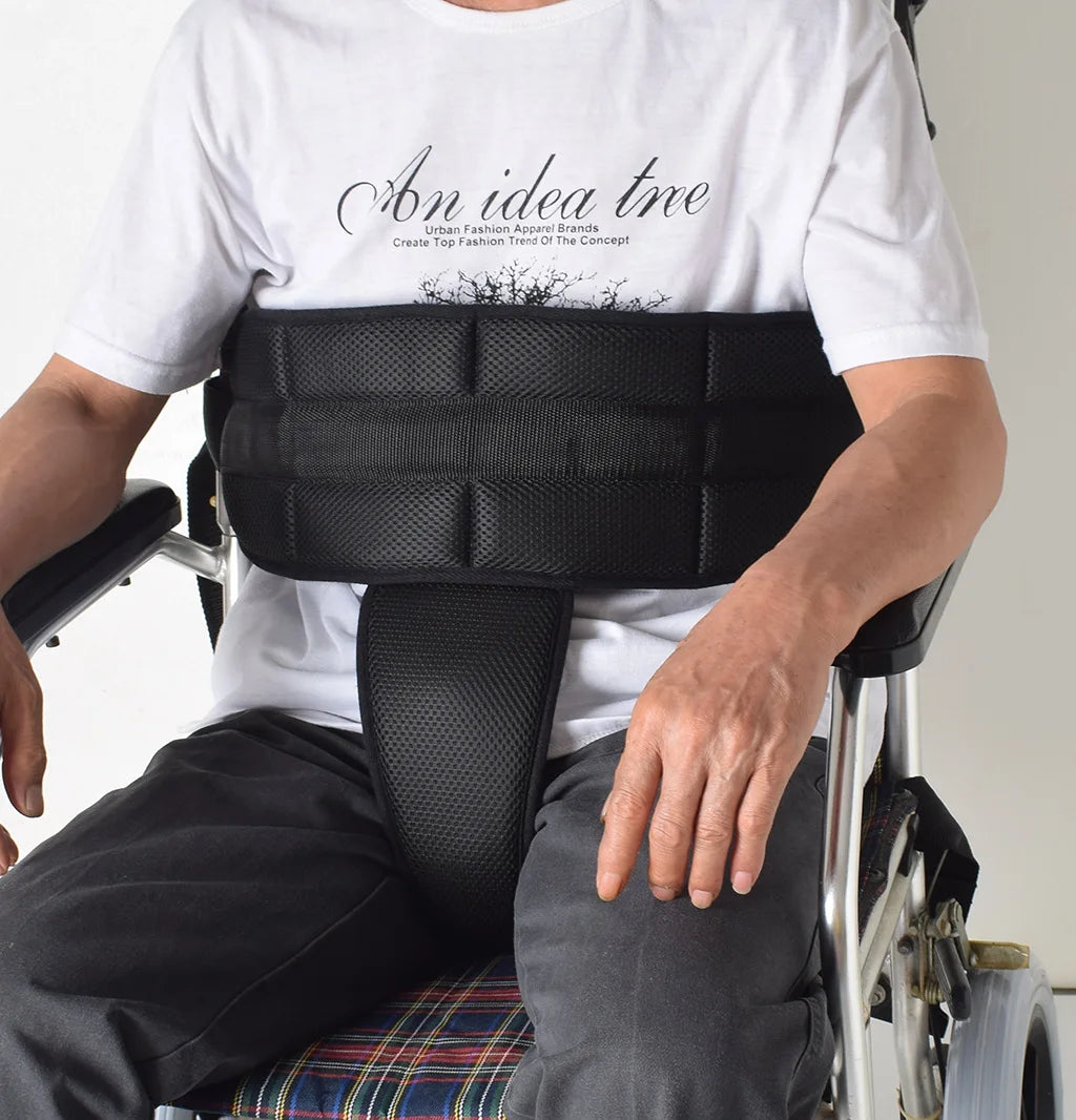 Rollstuhl-Sicherheitsgurt mit T-Polster – Atmungsaktiver Schutzgurt zur Sturzprävention und Fixierung von Patienten
